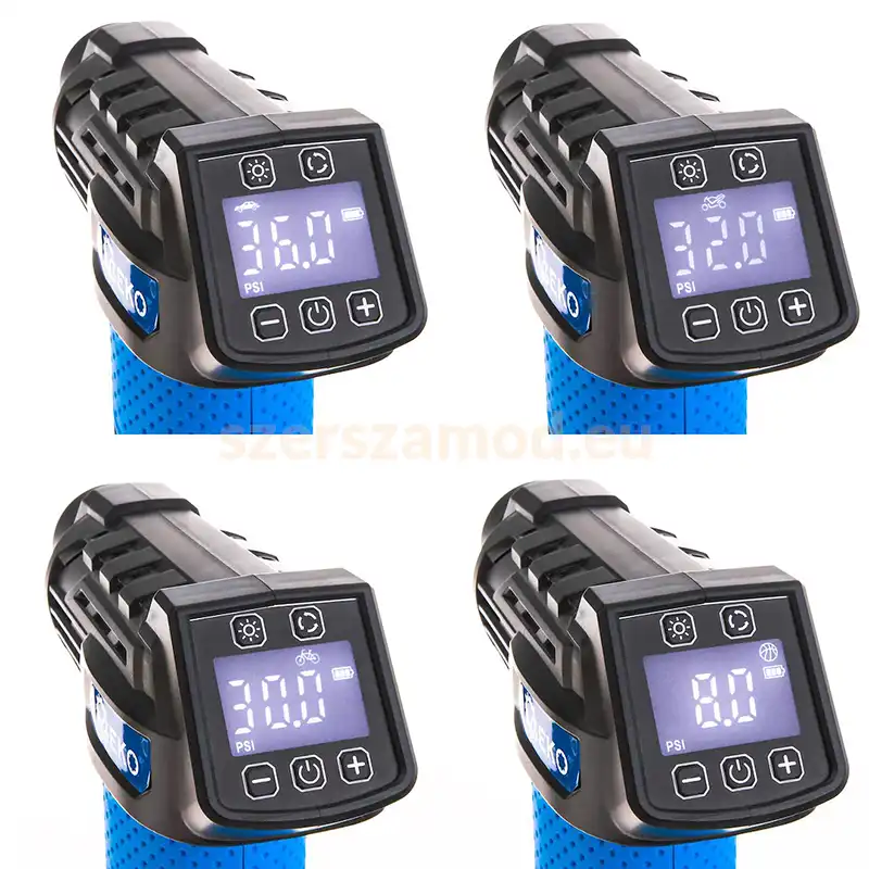 Az akkumulátoros kompresszor autó pumpa 12 V működéssel és 10.3 bar nyomással ideális gumik, labdák és egyéb eszközök felfújásához. Az LCD kijelző és LED világítás megkönnyíti a használatot, míg a kompakt kialakítás hordozhatóvá teszi.