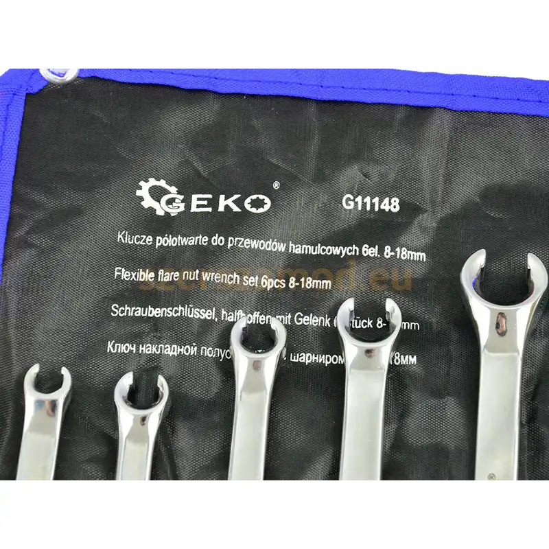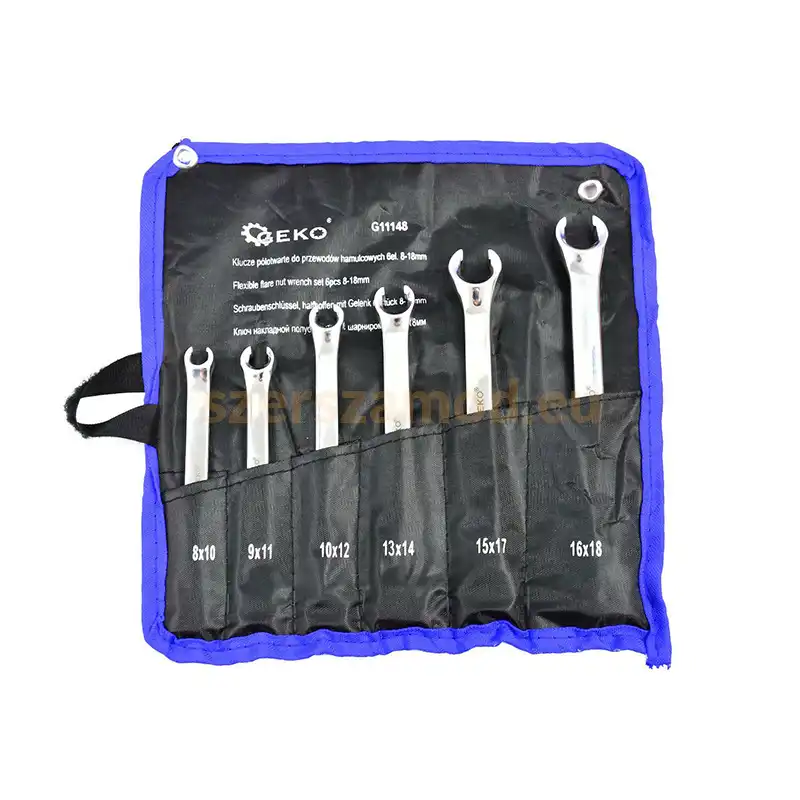 A GEKO fékcsőkulcs készlet 8–19 mm mérettartományban ideális fékcsövek és hidraulikus csatlakozások szereléséhez. A fékcsőkulcs készlet csökkenti a csőcsavarok sérülésének kockázatát.