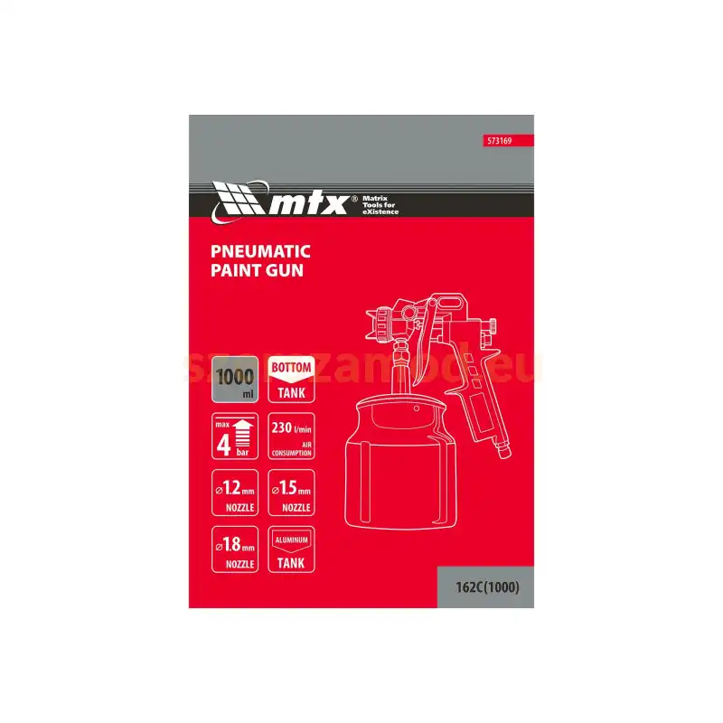 A festékszóró pisztoly kompresszorhoz 1 literes alsó tartállyal ideális festési és lakkozási feladatokhoz. A festékszóró pisztoly egyenletes szórásképet biztosít, így gyors és precíz munkavégzést tesz lehetővé.