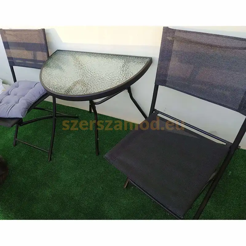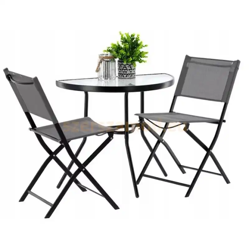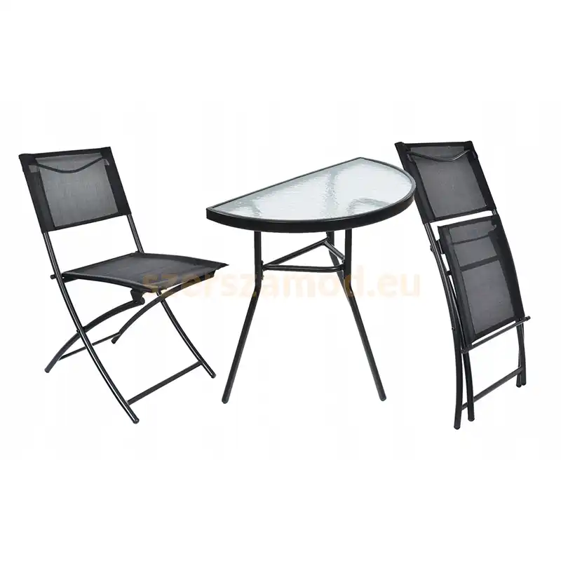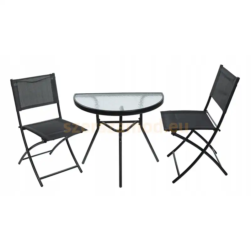 A kerti bútor szett fekete színben ideális teraszra vagy kertbe. A kerti bútor szett tartós anyagból készült, amely ellenáll az időjárási hatásoknak.