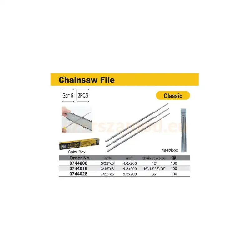 A láncreszelő készlet 3 darabos kivitelben 4.8 mm méretben ideális láncfűrész láncok élezéséhez. A láncreszelő segít megőrizni a lánc élességét és hatékony működését.
